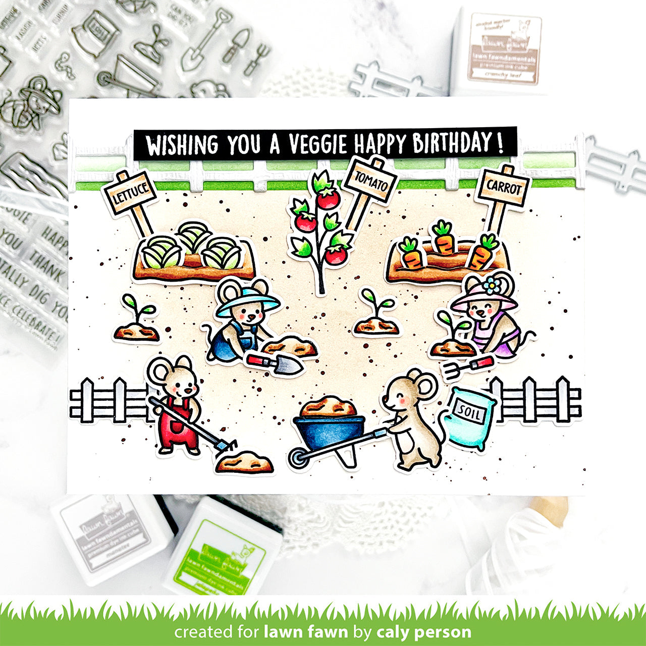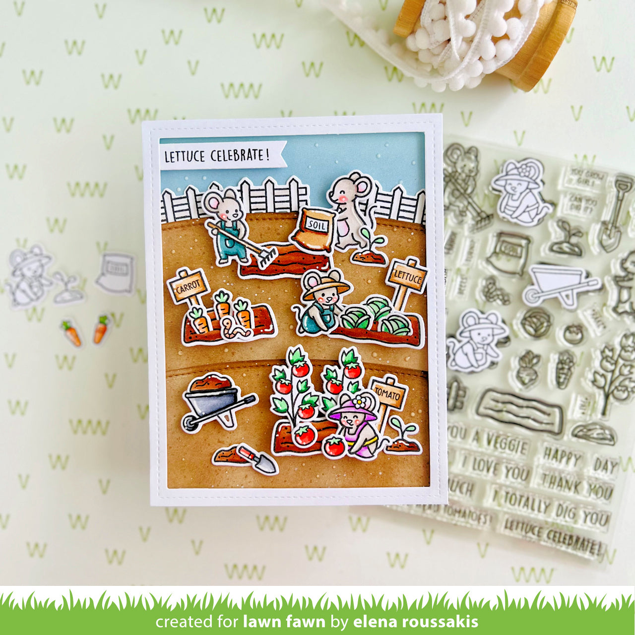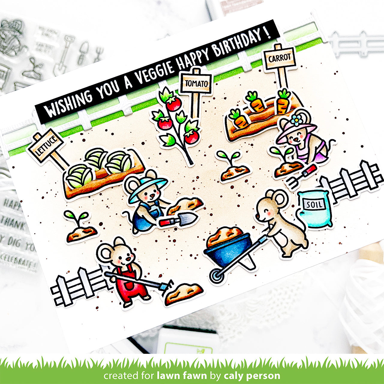 Lettuce introduce these adorable little gardeners! The mice are tending a bountiful garden full of happy greetings to share with friends and family! This set is perfect for birthday, gratitude, celebration, and thinking about you cards and projects. Share some love with the gardener in your life!