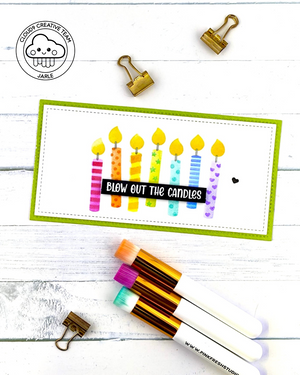 Cloud9 Crafts DT Inspiration: Mini Slimline Birthday Card feat. Lawn Fawn Birthday Candles Stencils