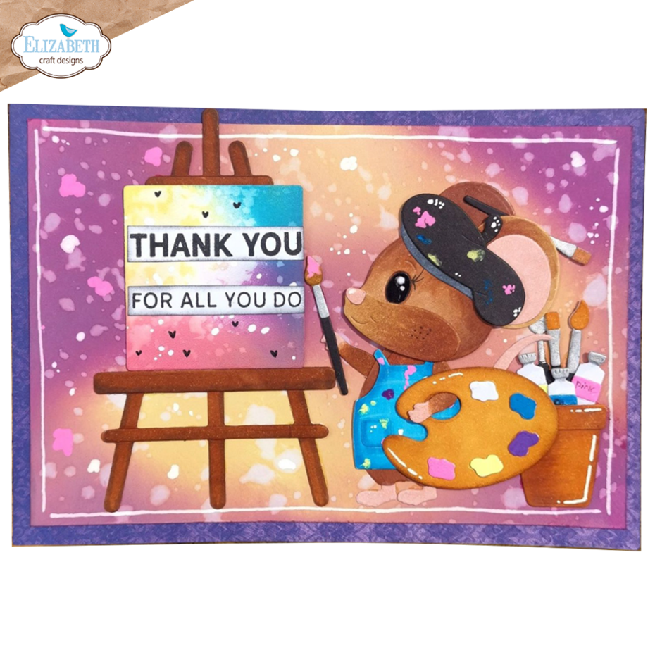 The set includes an easel, art supplies, and an apron. Perfect for creating fun art-themed scenes with your mice.