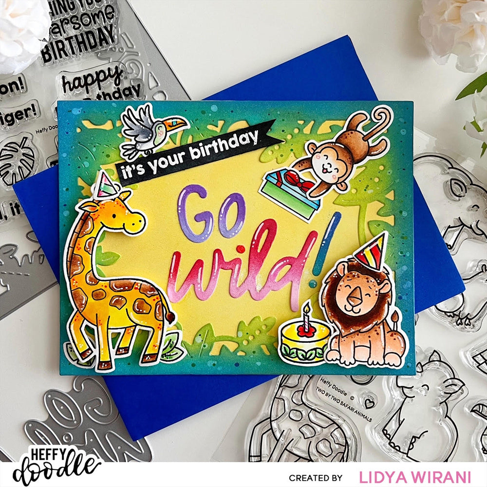 There is also a metal cutting die of the phrase 'Go Wild! in a whimsical font style, in addition to a matching outline die to create a shadow matt layer. Cut apart the frame die to create a jungle background for your projects, or use whole to create a quick and effective tropical framed background. Ideal for making shaker cards.