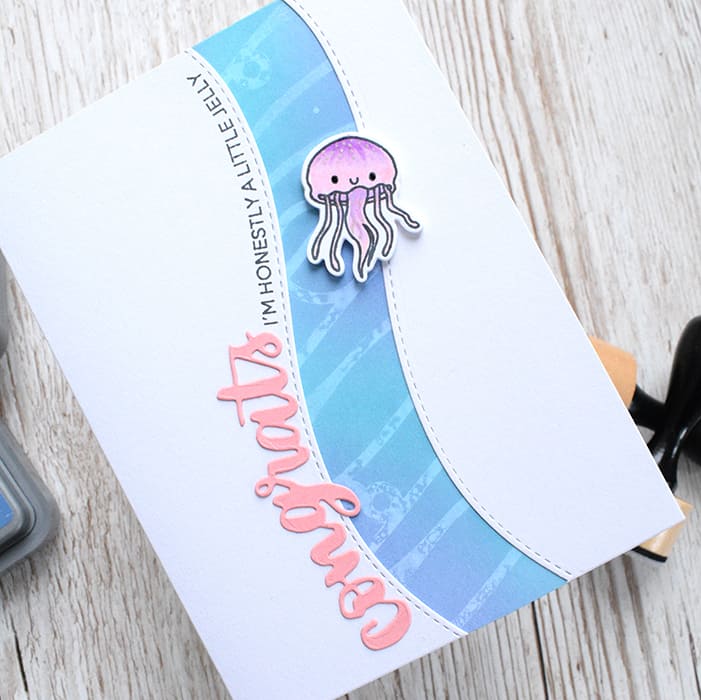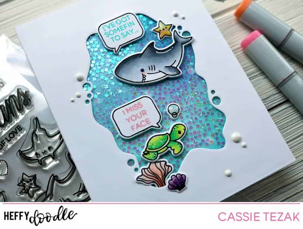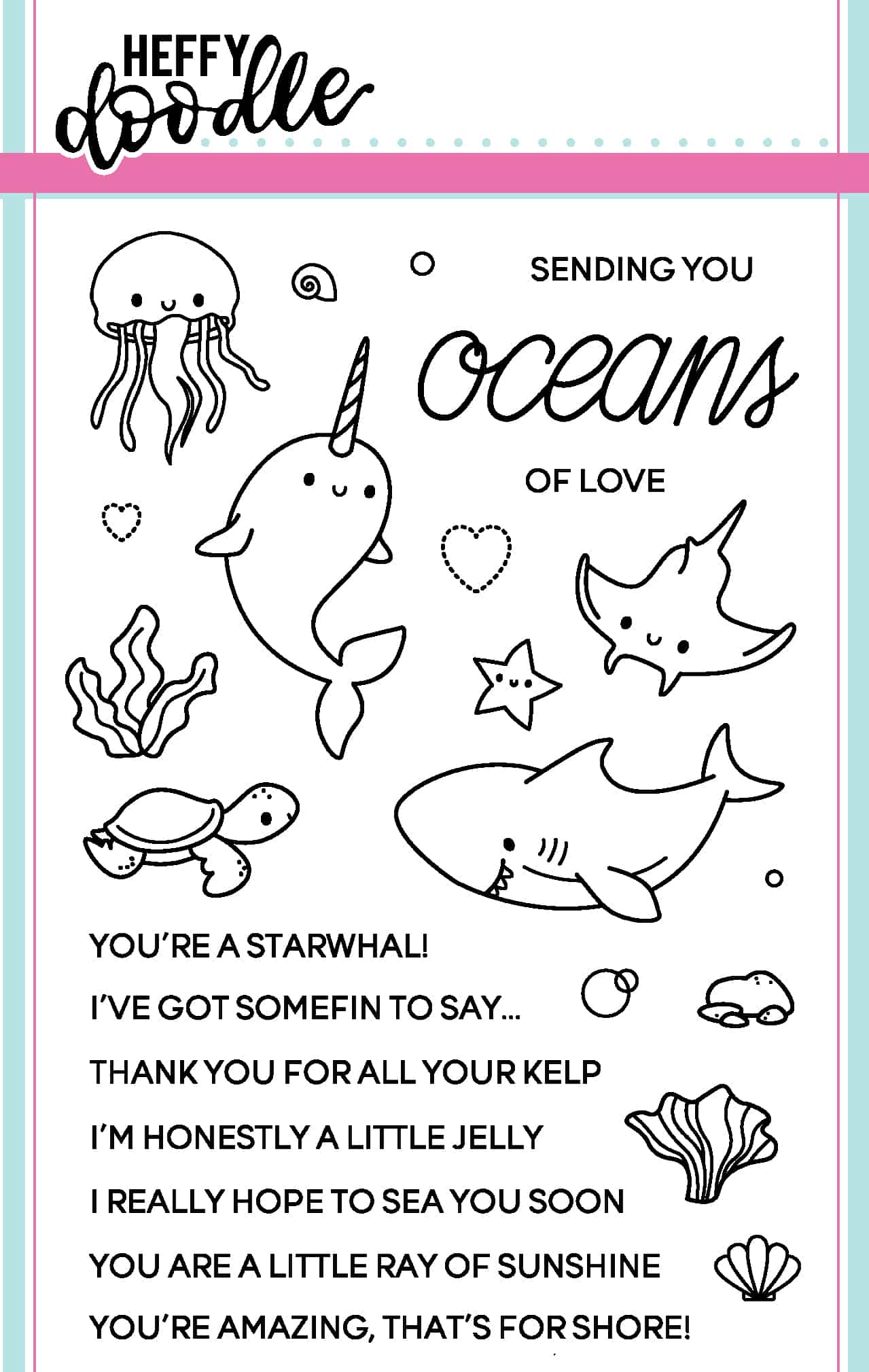 The set also includes a selection of scene building elements such as seaweed, shells, rocks, kelp and bubbles along with a number of pun-tastic sentiments.