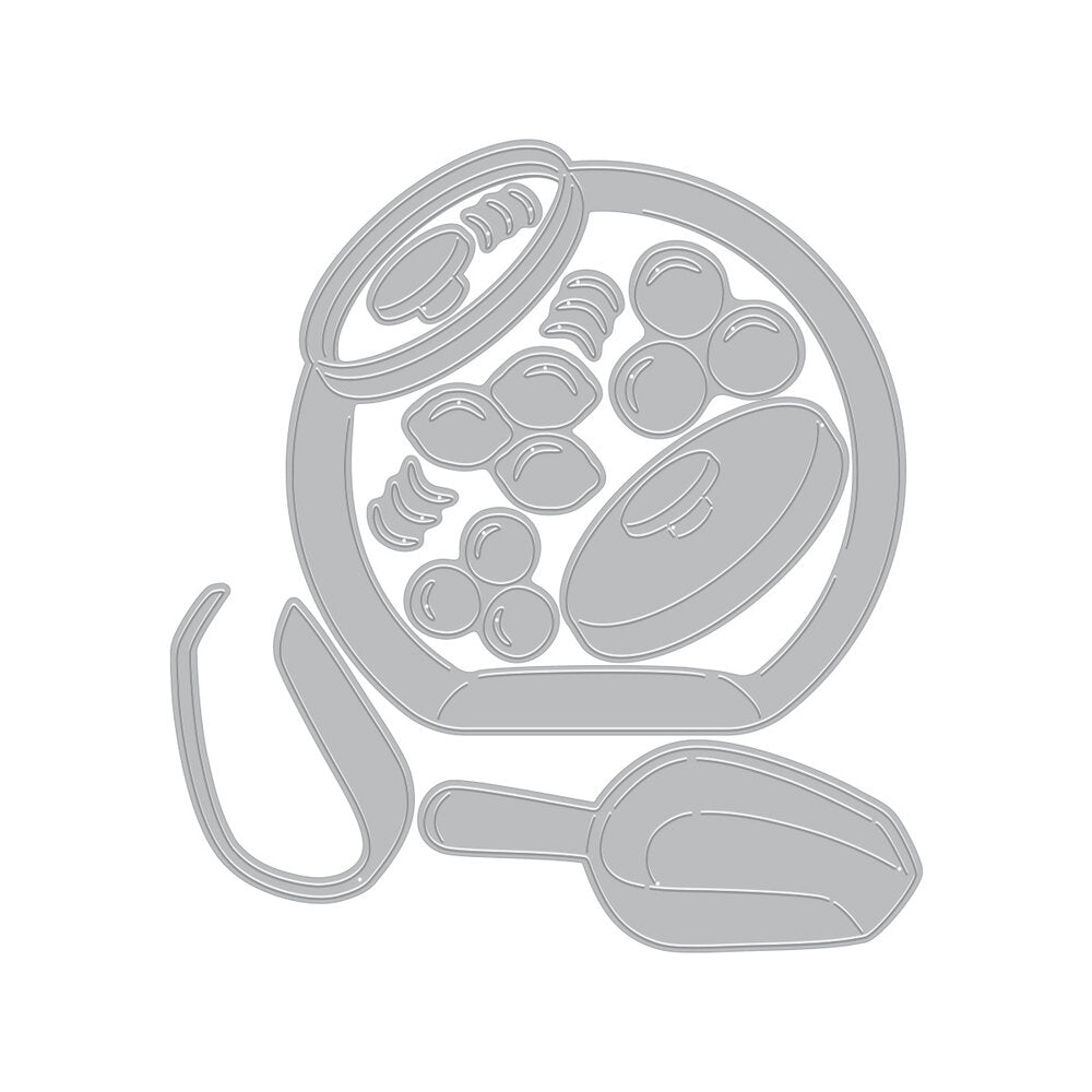 Create the cutest candy shop scenes with the Penny Candy Jar Die Set. This set includes a round candy jar, lid, scoop, and sweet candy details that layer together for a charming, dimensional look.