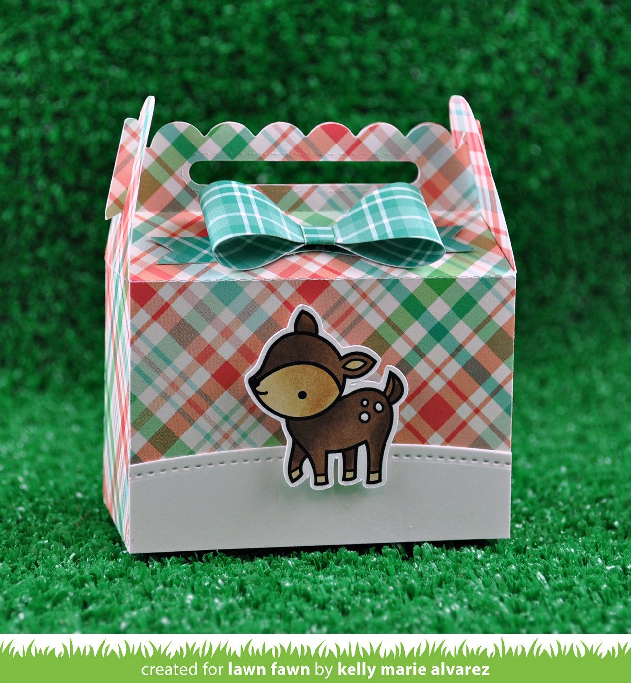 Make a simple card by layering the string of lights on the sitting deer's antlers. Or create a complete Christmas scene with critters decorating the tree!