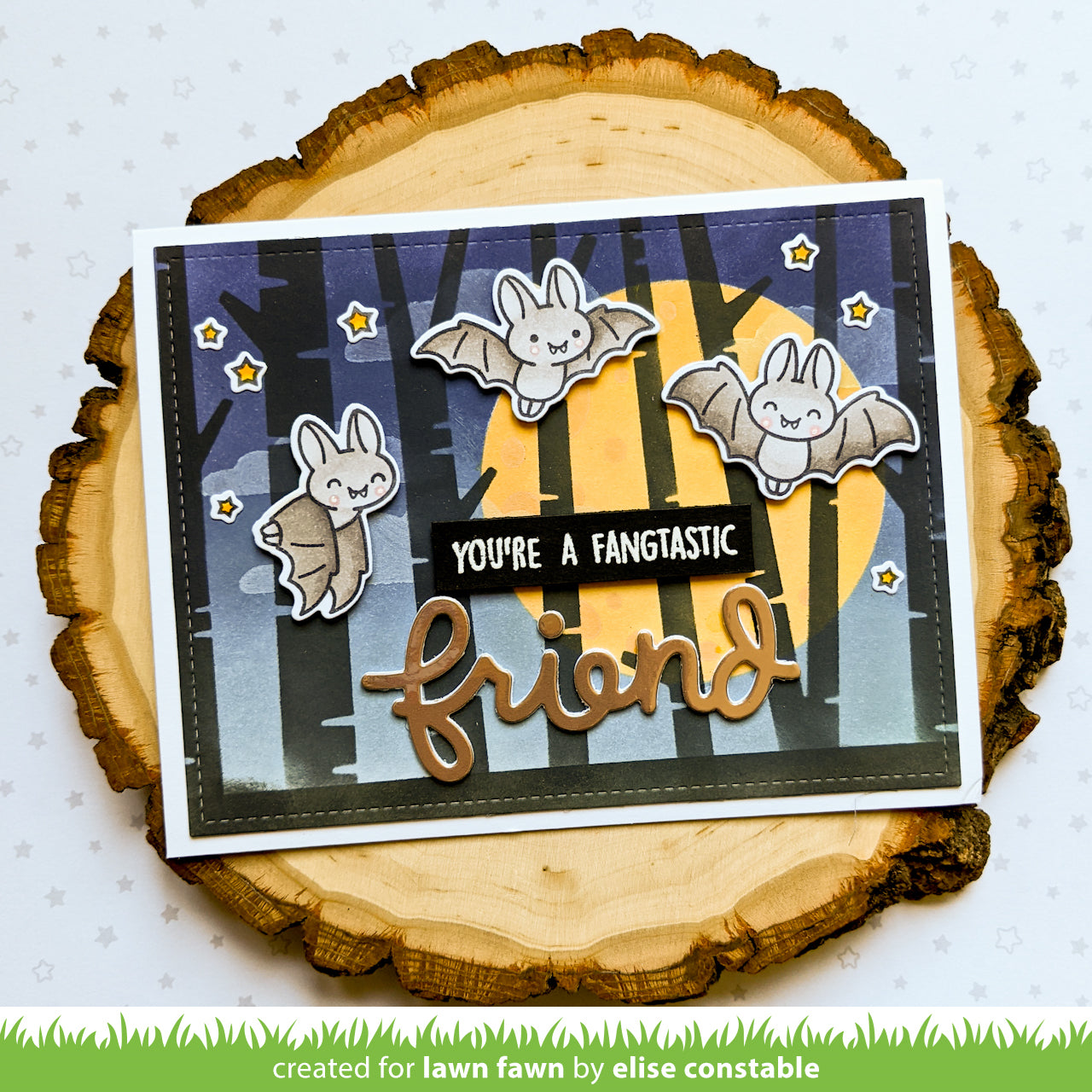 These adorable bats just want to hang around this Halloween! Create a spooky (but cute) scene with friendly insects, branches to hang on, and of course some fangtastic puns! Add more bats from Fangtastic Friends Add-On to really make it a party!