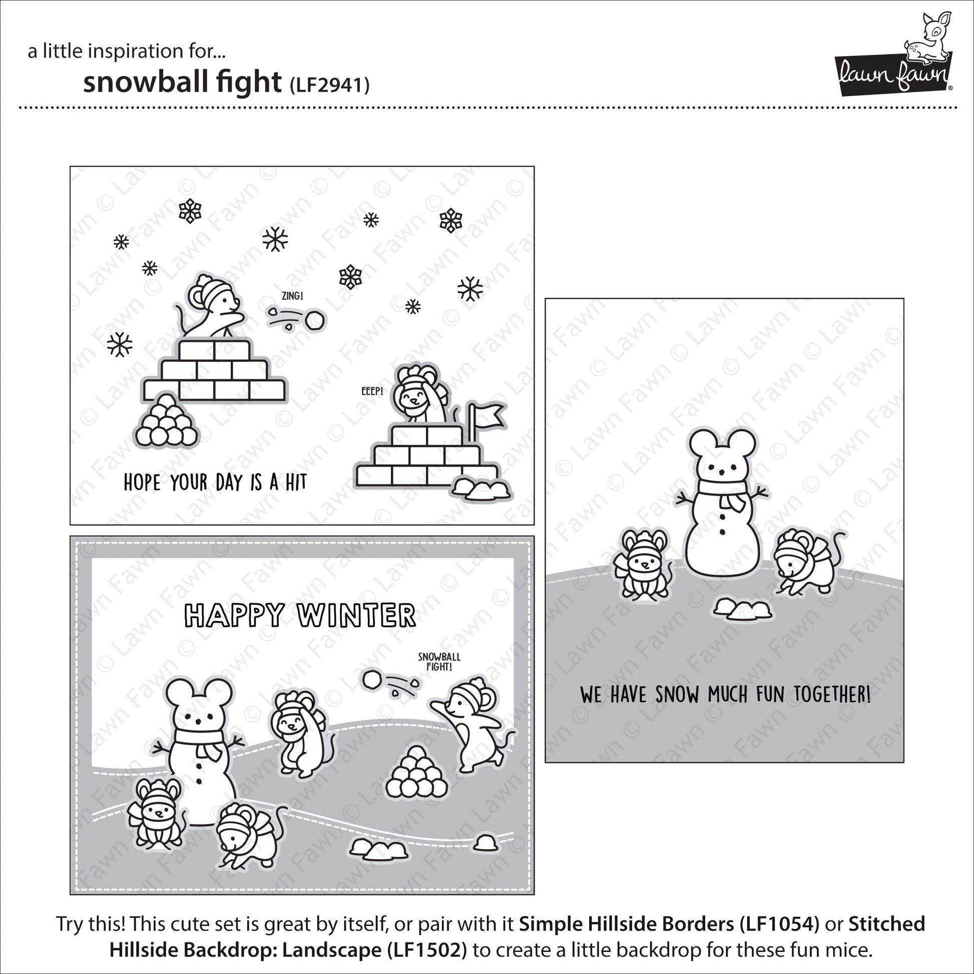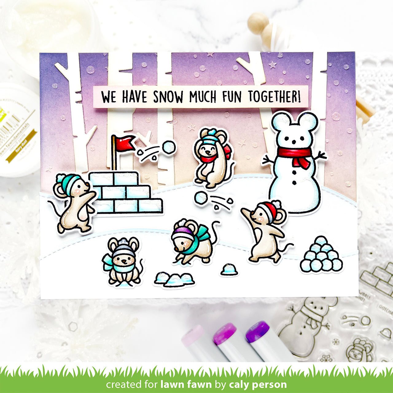 Coordinating set ideas: To create an amazing interactive scene for your snowball fight, use the Peekaboo Pop-Up. Pair this set with Toboggan Together so the deer and penguins can join in the fun! Invite mice from other sets too; the collection is growing so you have lots of variety! Create a snowy scene with a Stitched Hillside Backdrop: Portrait and Stitched Hillside Backdrop: Landscape.