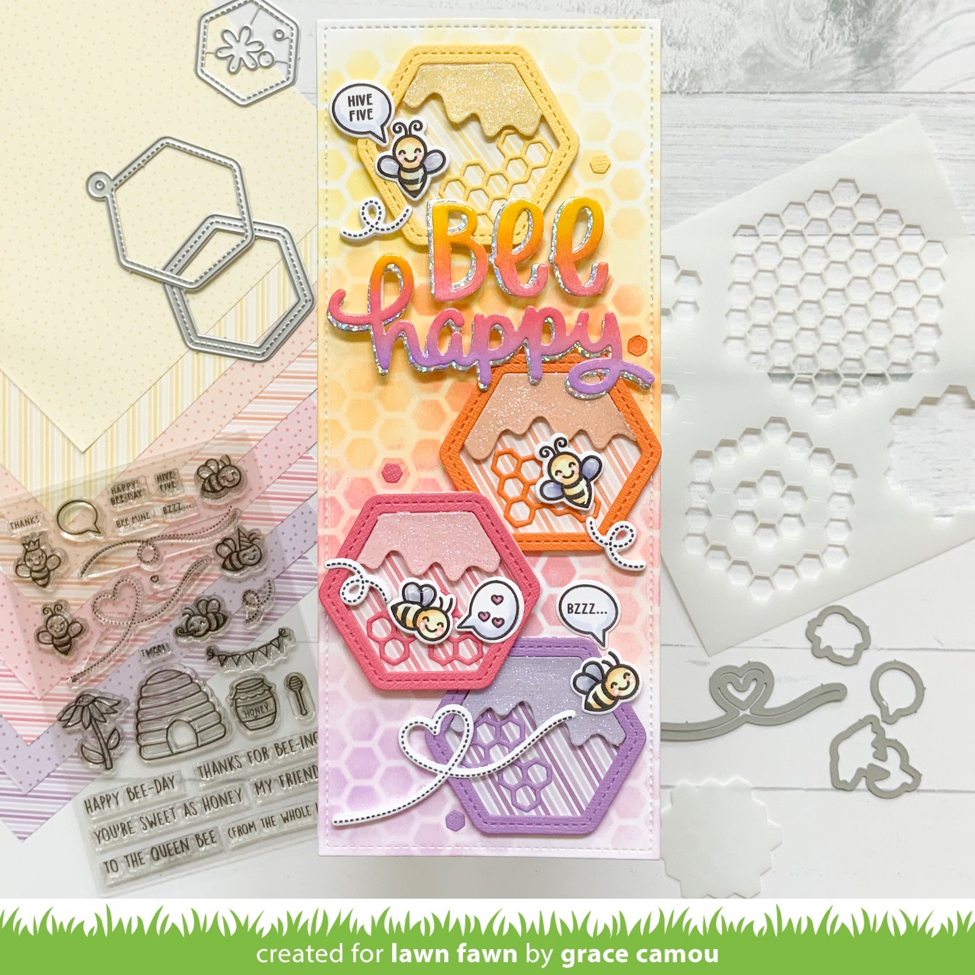 Hive Five was previously released in the Lawn Fawn Hive Five kit in 2022. We are so excited to have it available now!