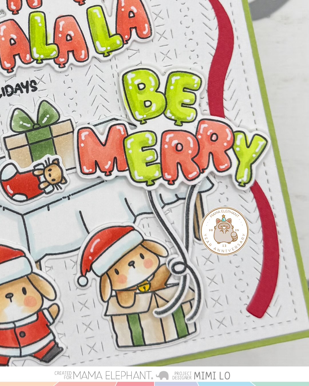 This festive set featuring mylar-style balloons that spell out holiday favorites like Holly Jolly and FaLa LaLaLa. Perfect for adding a playful, celebratory touch to your holiday cards, party invites, and scrapbook projects, these balloon sentiments bring instant cheer and sparkle to your creations!