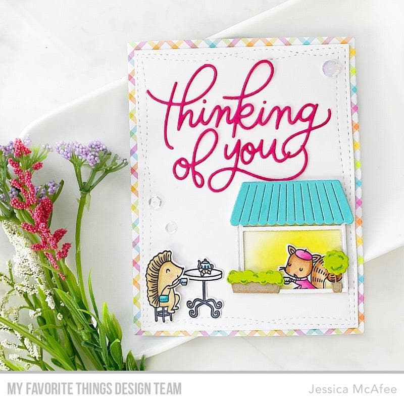 No matter your preferred travel adventure, having a bestie to experience it with makes it even more fun! Travel Buddies features six different animal friends that love a good trip. By car or by foot, souvenir shopping or nibbling on a local specialty, taking selfies with iconic landmarks in the background, or simply sitting and watching life go by, you'll love the variety of activities captured by this adorable set. Additionally, the Boutique Storefront Die-namics provides a fantastic option for completing your travel scene!