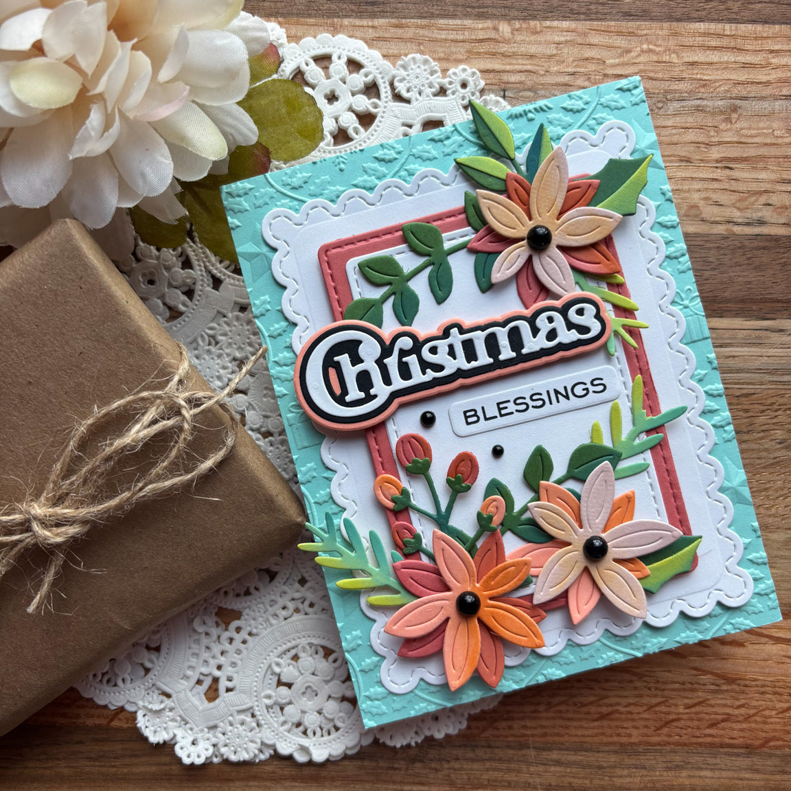 Christmas Foliage Etched Dies are part of the All About Christmas Collection by Lisa Horton. There are different ways to use this set of 12 thin metal cutting dies from making clusters, garland, accenting edges and more! A very versatile set!