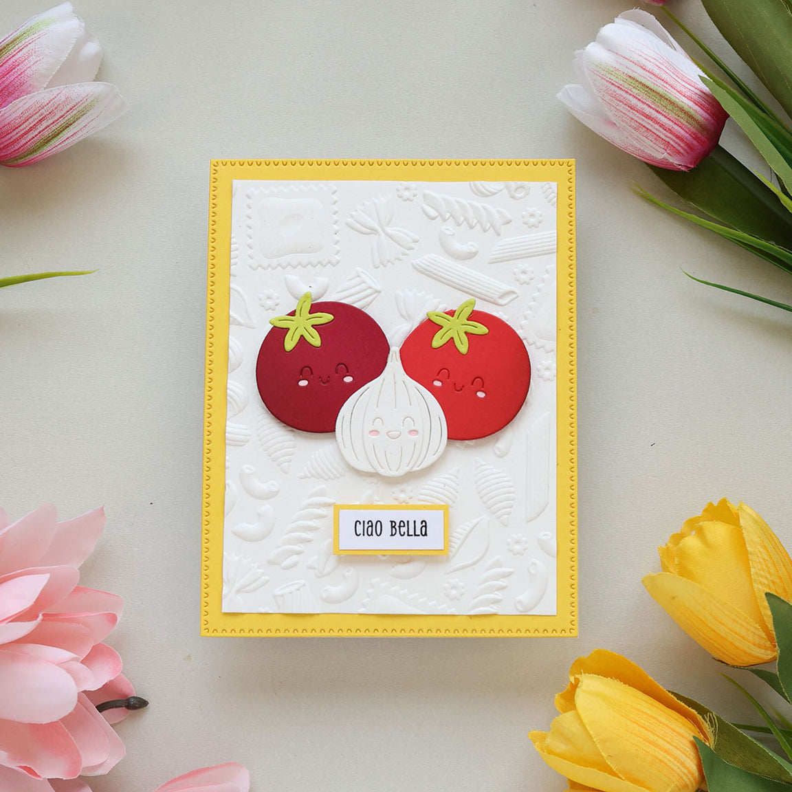 The Buon Appetito Collection is Pasta-tively FUN with all the ingredients to create fabulous and saucy projects! With an embossing folder, stamp set and dies, you can make yummy creations full of personality.