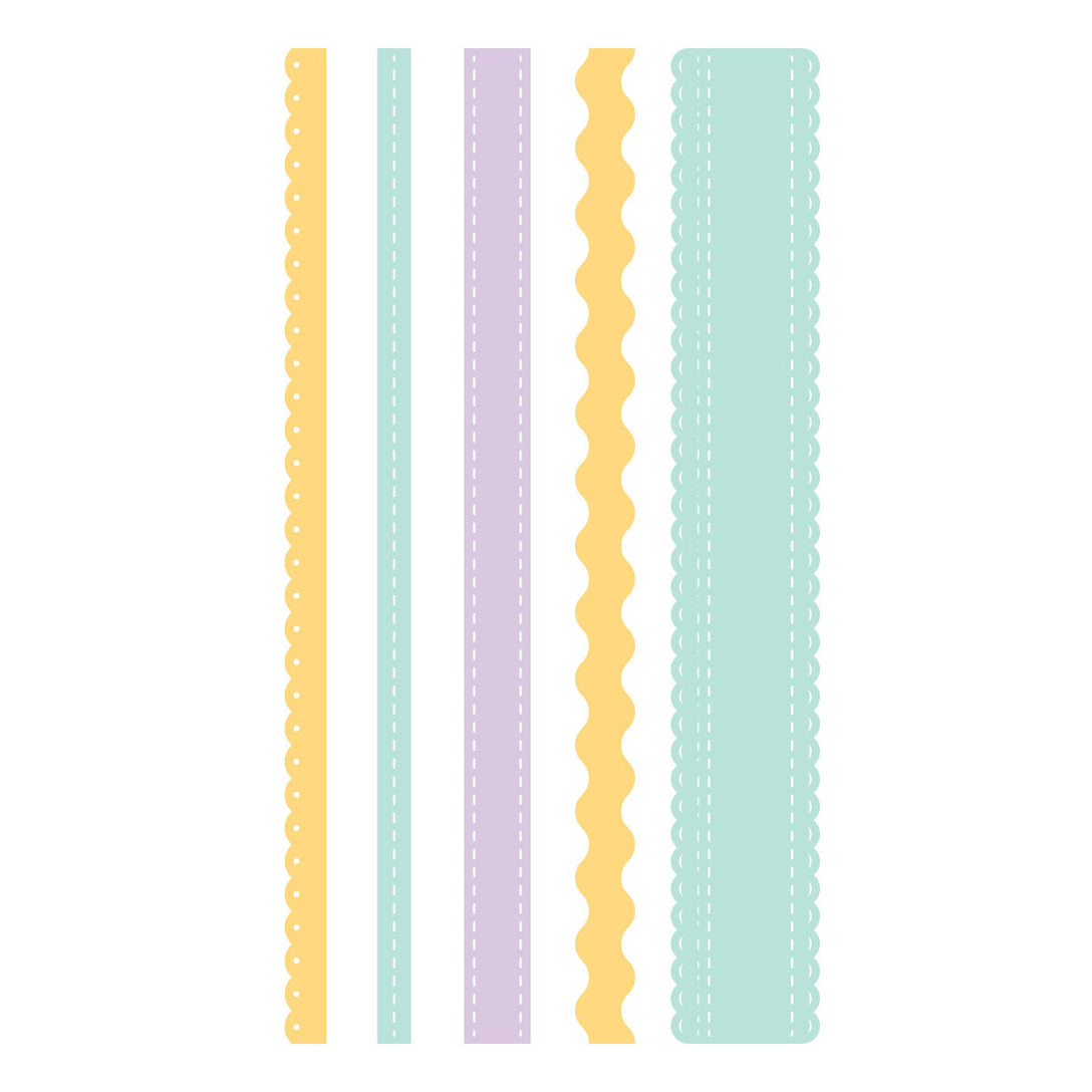 This sweet set cuts five different decorative edged designs. Cut them out twice to make a 12-inch length for scrapbook pages. Cut them out several times for a background. So many design opportunities with this set of five thin metal cutting dies!